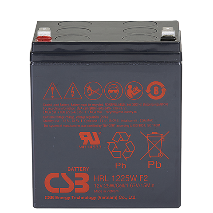 Свинцово-кислотный, герметичный аккумулятор, 12В/6,25Ач, ножевые клеммы 6.35х7.95 мм (F2), 90х70х106,1мм, 2,5кг