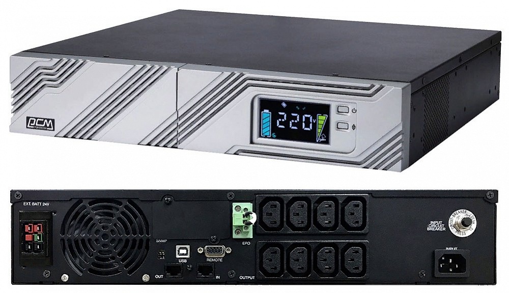 Источник бесперебойного питания Line Interactive 1000 ВА; АС 220В; Нагрузка 900 Вт; Чистый синус; 2 АКБ 12В, 9Ач; Защита от перегрузки и КЗ; LCD дисплей; Розетка IEC-320 С13x8шт; Защита RJ-45; USB-порт; RS-232; SNMP порт; AVR; 0 ...+40°С; монтаж в 19" стойку; 428х431х84 мм.