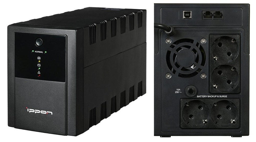 Источник бесперебойного питания; line-interactive, мощность 1500ВA, 900 Вт; розетки с батарейной поддержкой Schuko: 4шт; Модифицированная синусоида; 139 x 195 х 364 мм