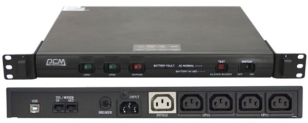 Источник бесперебойного питания Line-Interactive 600 ВА; АС 220В; Нагрузка 480 Вт; Модифицированная синусоида; 2 АКБ 6В, 7.2Ач; Защита от перегрузки и КЗ; RJ-45, USB; Розетка IEC-320 С13x 5шт; Монтаж в 19" стойку; 0 ...+40°С; 380х365х42 мм.