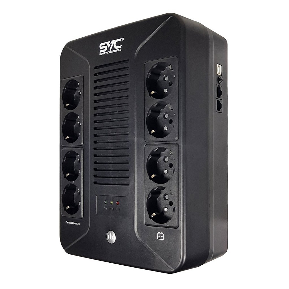 Источник бесперебойного питания линейно-интерактивный, P-нагр.850ВА/510Вт, U-вх.220В, AVR:165...275В, U-вых.220В±10%, АКБ 1х12В/8Ач; выходные разъемы 4хSchuko CEE7/4+4хSchuko CEE7/4(без бат. поддержки; светодиодная индикация; IP20, 270х210х95 мм Напольный