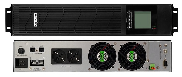 Источник бесперебойного питания 220В On-Line, синусоидальная форма выходного напряжения; P-вых.3000 ВА (2700 Вт), U-вх.176...300 В, U-вых.208/220/230/240 В (устанавливается пользователем), внешние АКБ (72 В, 12 В х 6 шт.) 26...150 Ач; 2 х Schuko; световая и звуковая индикация режимов работы, ЖК дисплей;RS-232, USB, EPO (удаленное аварийное отключение выходного напряжения), возможность установки карты сухих контактов или SNMP модуля; IP20, t-раб.0...+40С, 440х468х88 мм. Корпус высотой 2U для установки в 19" шкаф. В комплекте кабель питания, USB кабель тип А-В, кабель подключения АКБ, две подставки для вертикальной установки.