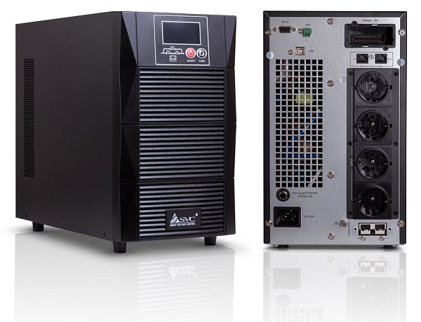 Источник бесперебойного питания OnLine 3000 ВА; АС 110-288 В ; Нагрузка 2700 Вт; Чистый синус; 8 АКБ 12 В, 7 Ач; Защита от перегрузки и КЗ; Розетка 4xSchuko; USB; RJ-45; SNMP; RS-232; 0 ...+40°С; 336х190x374 мм. LCD дисплей. Автоматическое включение.