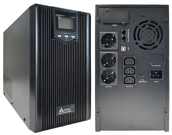Источник бесперебойного питания линейно-интерактивный, чистая синусоида; P-нагр.3кВА/2.4кВт, U-вх.220В, AVR:165...280В, U-вых.200/220/230/240В±5%, АКБ 4х12В/9Ач, Возм.подкл.внешних АКБ, U-шина 48В, I-зар.1А; выходные разъемы 3хSchuko CEE7/4+3хIEC-320-C13, LCD-дисплей, USB, SNMP-слот, IP20, 465х190х335 мм. Напольный