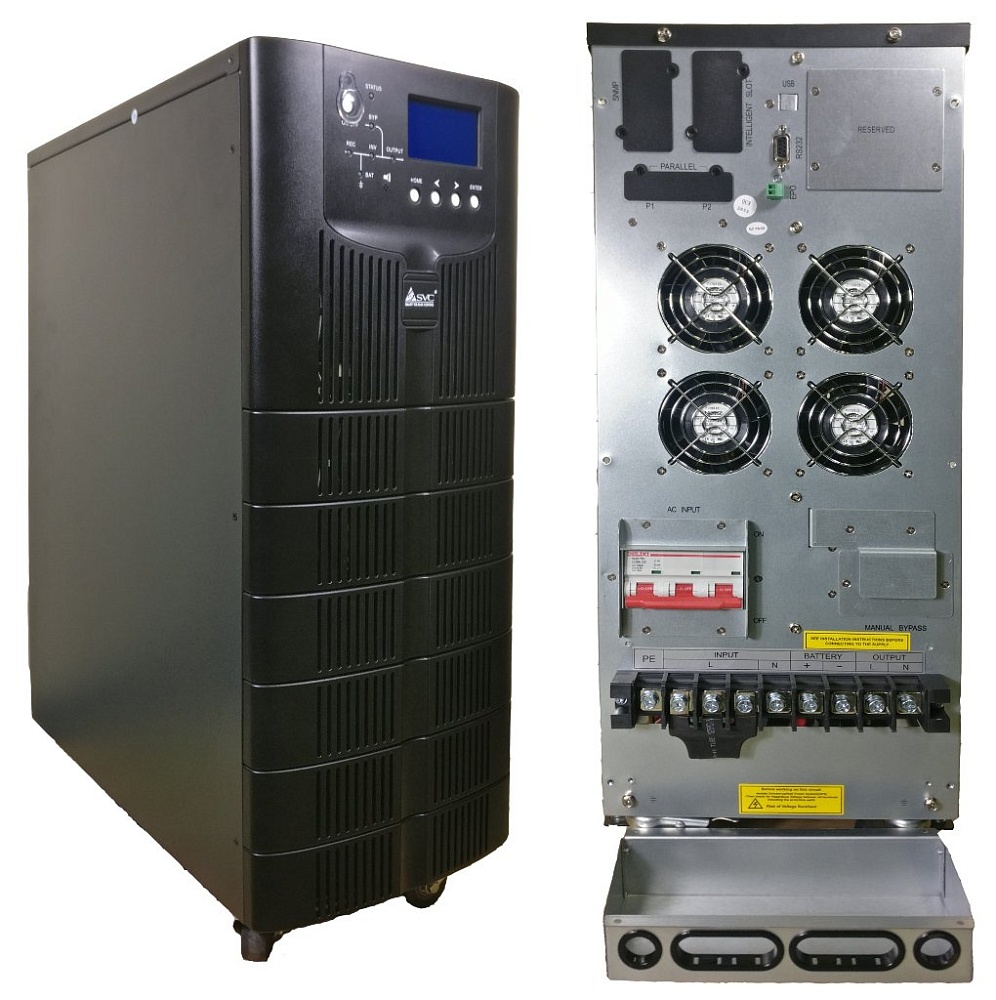 Источник бесперебойного питания On-Line, чистая синусоида; P-нагр.20кВА/18кВт, U-вх.220В, AVR:176...288В, U-вых.220/230/240В±1%, Внешние АКБ/Блоки(не входят в комплект), U-шина 192В, I-зар.5А; выходные разъемы Клеммная колодка, LCD-дисплей, SNMP-слот, RS-232. Напольный