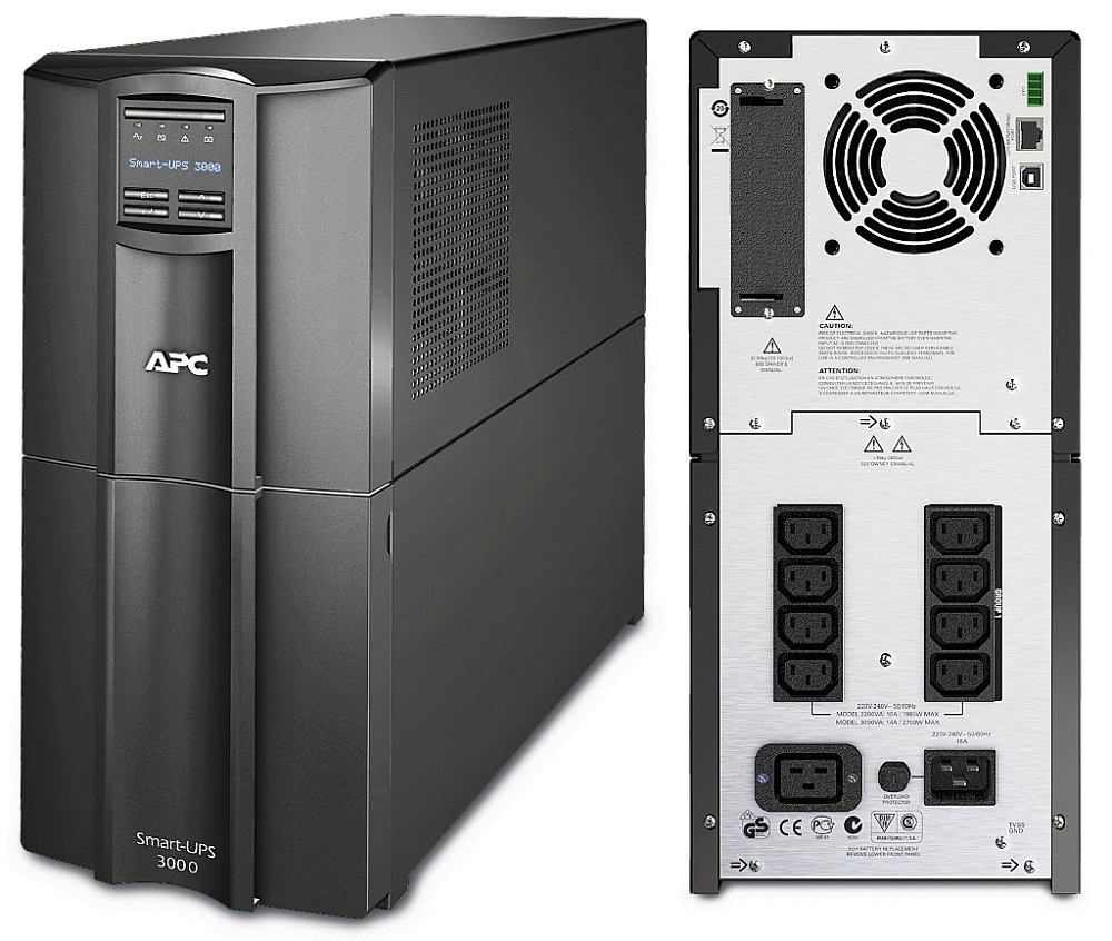 Источник бесперебойного питания Line-Interactive с ЖК дисплеем ; 3 000 ВА; АС 160-286 В; Нагрузка 2 700 Вт; cинусоидальный сигнал; Защита от перегрузки и КЗ; USB, SmartSlot; Выход 8 IEC 320 C13; Вход IEC-320 C20 1.8м; 0 ...+40°С; 435х197х544 мм.