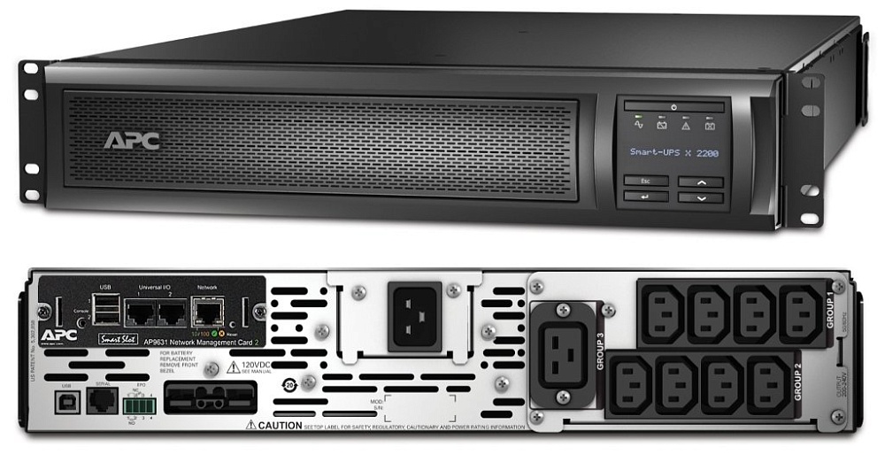 Источник бесперебойного питания Line-Interactive с ЖК дисплеем стоечный; 2 200 ВА; АС 140-280 В; Нагрузка 1 980 Вт; cинусоидальный сигнал; Защита от перегрузки и КЗ; RJ-45; USB, плата SmartSlot AP9631; Выход 8 IEC 320 C13; Вход IEC-320 C20 1.8м; 0 ...+40°С; 85x432x667мм. Для увеличения времени автономной работы SMX120RMBP2U.