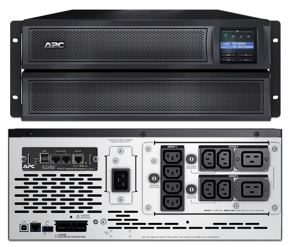 Источник бесперебойного питания Line-Interactive с ЖК дисплеем стоечный; 3 000 ВА; АС 140-280 В; Нагрузка 2 700 Вт; cинусоидальный сигнал; Защита от перегрузки и КЗ; плата SmartSlot AP9631; Выход 8 IEC 320 C13, 2 IEC Jumpers ; Вход IEC-320 C20 2,4м; 0 ...+40°С; 432х178х483мм. Для увеличения времени автономной работы SMX120BP.