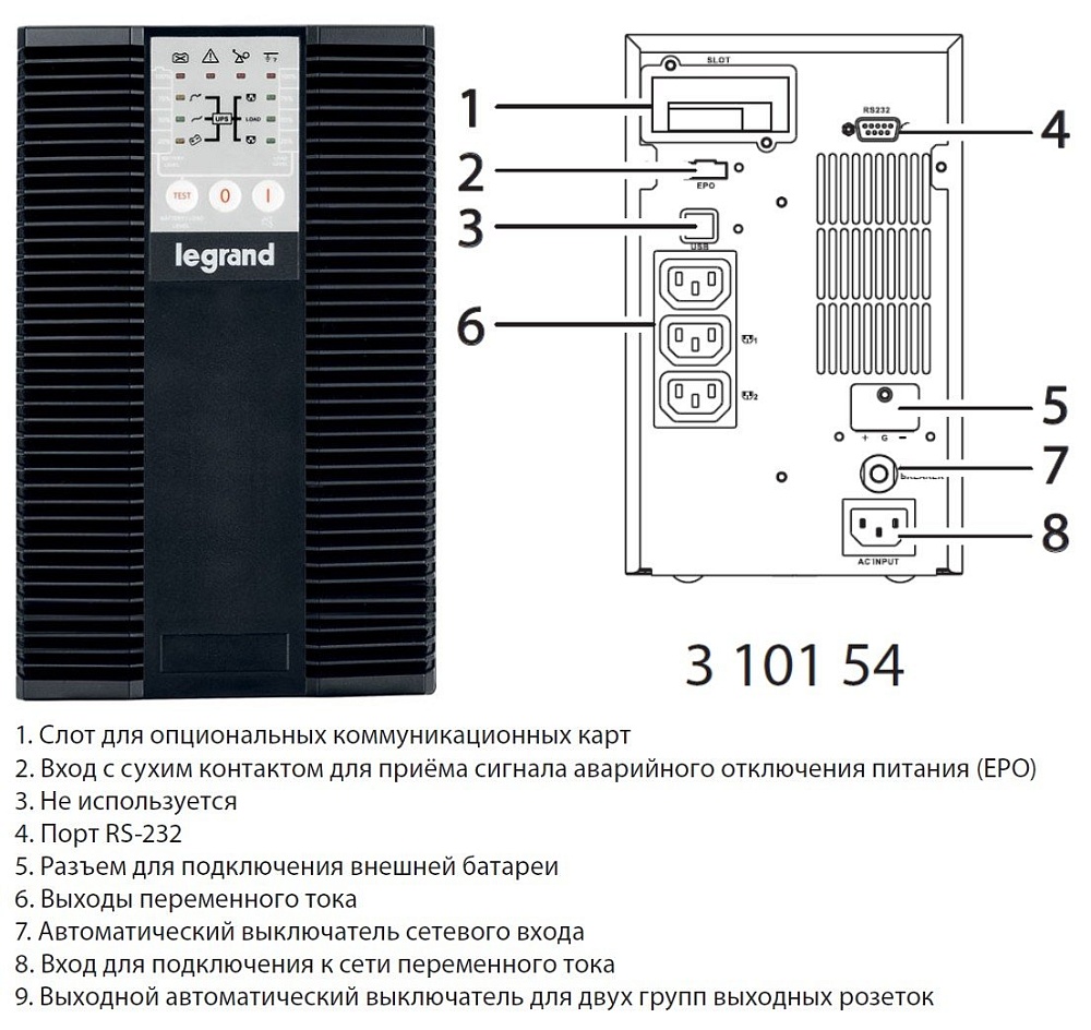 Источник бесперебойного питания ONLine-Interactive с ЖК дисплеем стоечный; 1 000 ВА; АС 230 В; Нагрузка 900 Вт; с двойным преобразованием, форма сигнала синусоидальная; слот для платы SNMP; RS-232; Аккумуляторы 12В 7Ач 2 шт; Выход 3 IEC 320 C13(10A); Вход IEC-320 C14; 0 ...+40°С; 236х144х367 мм.