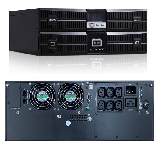 Источник бесперебойного питания On-Line для установки в 19" шкаф, высота 4U, чистая синусоида; P-нагр.3кВА/2.7кВт, U-вх.220В, AVR:110...288В, U-вых.200/208/220/230/240В±1% , АКБ 8х12В/7Ач, Возм.подкл.внешних АКБ/Блоков (до 3-х блоков), U-шина 96В, I-зар.1А; выходные разъемы 6хIEC-320-C13+1хIEC-320-C19, LCD-дисплей, SNMP-слот, USB, RS-232; IP20, t-раб.0...+40°С, 490х440х173 мм