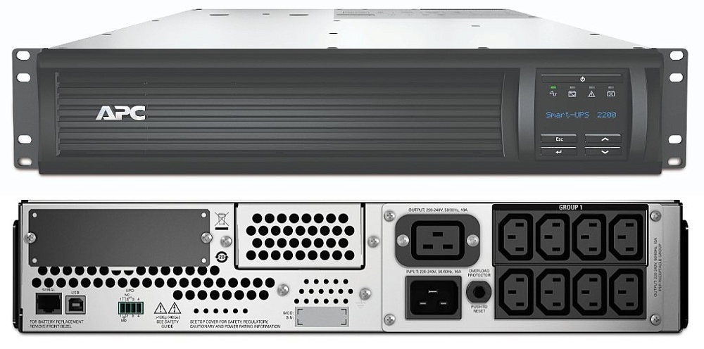 Источник бесперебойного питания; line-interactive, мощность 2200ВA, интерфейс RS-232, интерфейс USB, LCD-дисплей, розетки с батарейной поддержкой IEC320: 8шт