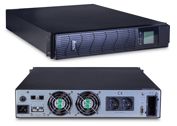 Источник бесперебойного питания OnLine 2000 ВА; АС 110-300 В; Нагрузка 1800 Вт; Чистый синус; 6 АКБ 12 В, 9 Ач; Защита от перегрузки и КЗ; Розетка 2хSchuko; RS-232; защита Ethernet; LCD дисплей; USB; 0 ...+40°С; 2U; 88х440x660 мм.
