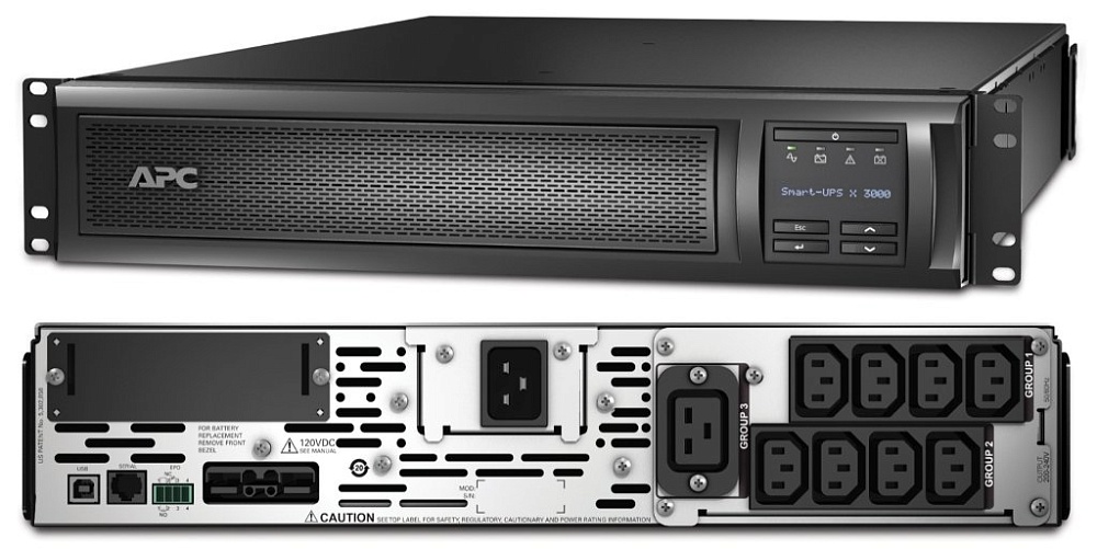 Источник бесперебойного питания Line-Interactive с ЖК дисплеем стоечный; 3 000 ВА; АС 140-280 В; Нагрузка 2 700 Вт; cинусоидальный сигнал; Защита от перегрузки и КЗ; SmartSlot; Выход 8 IEC 320 C13; Вход IEC-320 C20 1.8м; 0 ...+40°С; 85х432х667мм. Для увеличения времени автономной работы SMX120RMBP2U.