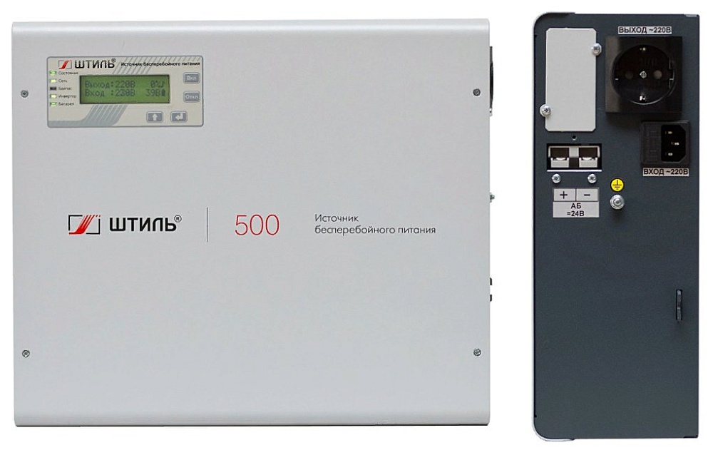 Источник бесперебойного питания 220 В настенный, on-line (с двойным преобразованием), чистая синусоида, 500 ВA (400 Вт); под внешние аккумуляторы, U-акб.24 В, I-заряд.5 А; ЖК-дисплей; выходные разъёмы - EURO F-type с заземлением (1 шт.); холодный старт, совместим с генератором; IP20, t-раб.+5...+40°С, 287х357х116 мм (с кронштейном)