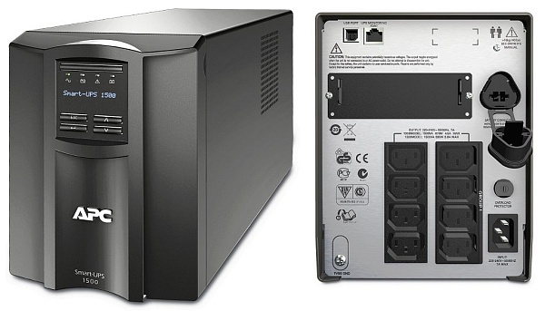 Источник бесперебойного питания линейно-интерактивный, синусоидальная форма выходного напряжения, ЖК-индикатор; P-вых.1.0кВт/1.5кВА, U-вх.151...302В (программируется), одна сменная батарея RBC7; SmartSlot, USB; 8 выходов IEC 320 C13 (Батарейное резервное питание); t-раб.0...40°С, 219х171х439 мм, 24.09 кг. В комплекте кабели RS-232 и USB.