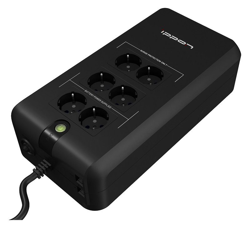 Источник бесперебойного питания Off-Line 600 ВА; 220/220 АС; Нагрузка 300 Вт; Ступенчатый сигнал; 1 АКБ 12 В, 5 Ач; Защита от перегрузки и КЗ; RJ-45; 4 бат Schuko, 2 фильтр Schuko; 0...+40°C; 320х125х86 мм. В автономном режиме автоматически отключается через 30 мин.
