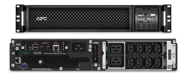 Источник бесперебойного питания Online с ЖК дисплеем стоечный с платой SmartSlot™ AP9631; 3000 ВА; АС 160-275 В; Нагрузка 2700 Вт; cинусоидальный сигнал; Защита от перегрузки и КЗ; USB, RJ-45, SmartSlot; Выход 8 IEC 320 C13, 2 IEC Jumpers; Вход 1 IEC 320 C14 2.4м; 0 ...+40°С; 432x85x635мм. Дополнительный батарейный модуль SRT96RMBP.