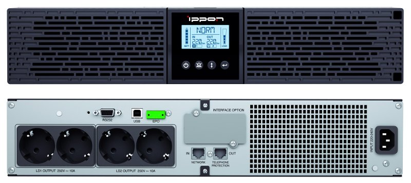 Источник бесперебойного питания; line-interactive, мощность 1500ВA, 1350 Вт; LCD-дисплей, розетки с батарейной поддержкой Schuko: 4 шт; USB/RS232; Чистая синусоида; 439х86,5х436 мм