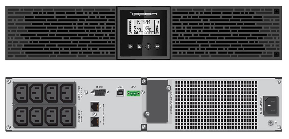 Источник бесперебойного питания; line-interactive, мощность 2000ВA, 1800 Вт; LCD-дисплей, розетки с батарейной поддержкой IEC320 С13: 8шт; USB/RS232; Чистая синусоида; 439 х 86,5 х 436 мм