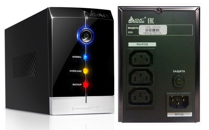 Источник бесперебойного питания линейно-интерактивный; P-нагр.800ВА/480Вт, U-вх.220В, 3 мс, АКБ 1х12В/9Ач; защита телефонной линии, светодиодная индикация; выходные разъемы 3хС13; IP20, 340х110х160мм. Напольный