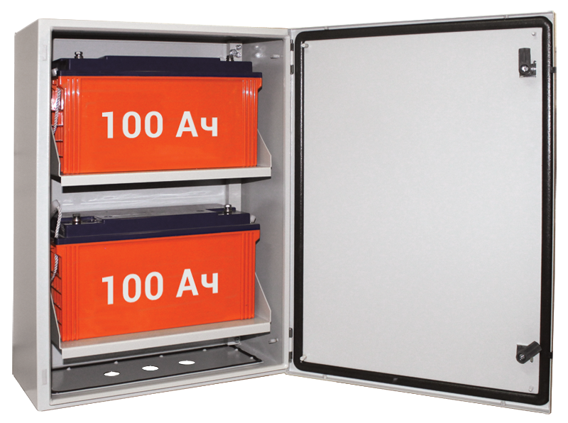 Аккумуляторный отсек уличного исполнения, под два аккумулятора 12 В / 100…120 Ач, степень защиты оболочкой IP65, диапазон рабочих температур -40…+40°С, габаритные размеры 410х200х280 мм, 12,5 кг