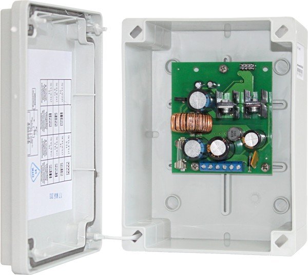 Преобразователь напряжения; U-вх. 10...60 В, U-вых. 12...15 В (ступенчатая регулировка ± 0.5 В), I-вых. ≤1,5 А, IP56, t-раб. -40...+40 °С, габ.размеры 125х165х85 мм