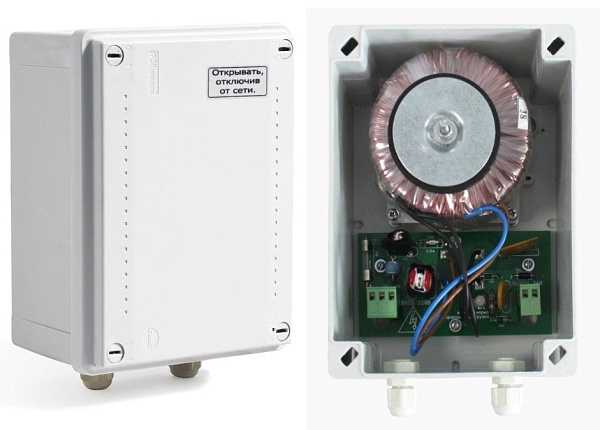 24 В переменного напряжения; трансформаторный; номинальный ток выхода 2 А; защита выходов от КЗ и перенапряжения; световая индикация; уличного исполнения; IP56; t-раб.-40…+50°С; 181х124,5х87 мм.