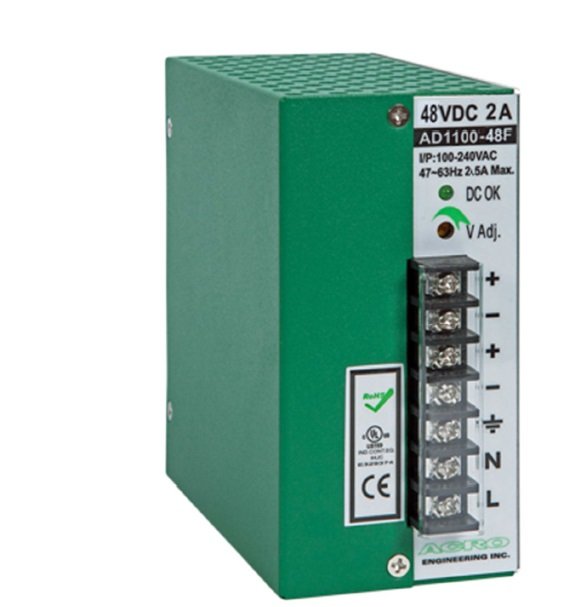 Промышленный источник питания на DIN-рейку, Выход 100 Вт / DC 48 В / 2 A, -20…+70°C; 110x121x56 мм.