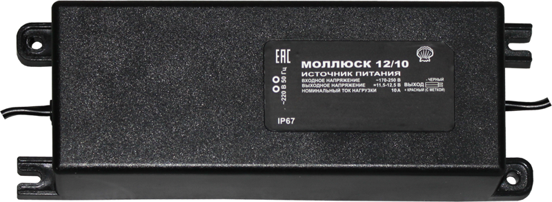 Источник питания стабилизированный малогабаритный; 12 DC; 10 А; IP67; -30…+40 °С; 170...250 АС; 70х205х40 мм. Защита от перегрузок и КЗ.