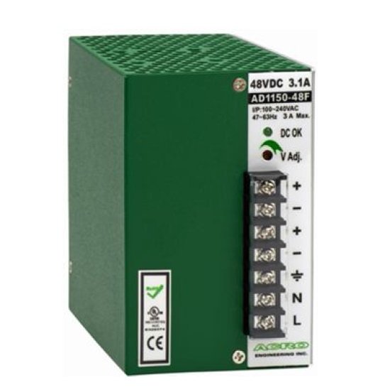 Промышленный источник питания на DIN-рейку, Выход 150 Вт / DC 24 В / 6.3 A, -20…+70°C; 110x121x75 мм.