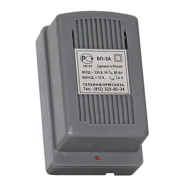 12 В стабилизированный, ток 1,4 А круглосуточно, трансформаторный, регулировка выходного напряжения, пластиковый корпус, t-раб.+5...+40°С, 125х75х60 мм