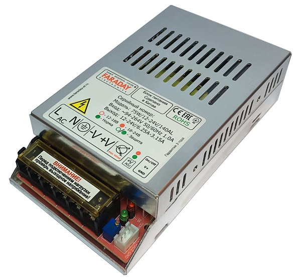 Источник электропитания стабилизированный импульсный с регулировкой выходного напряжения; вход АС 100-240 выход DC 12 В/6.3 А-24 В/3.12 А; 134х74х37 мм; -25…+65 °C, возможно крепление на DIN рейку с помощью DIN Holder (кронштейн поставляется отдельно)