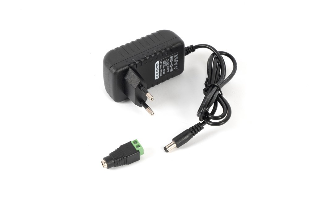 12 В, 2 А. U-вх.110...245 В; сетевая вилка, штекер 5.5х2.1 мм, переходник на клеммы в комплекте; IP20, 25х75х75 мм. Пластиковый корпус.