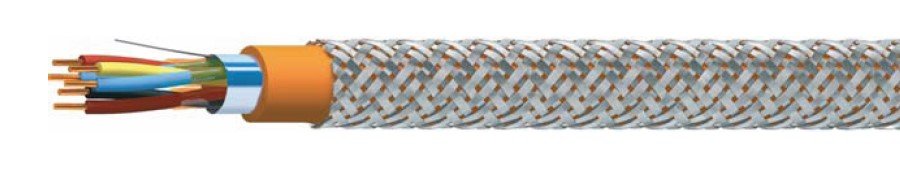 Кабель для промышленного интерфейса RS-485, огнестойкий, с пониженным дымо- и газовыделением; однопроволочный, 4х2х0,8 мм, наружный размер 15,1 мм; изоляция: кремнийорганическая керамообразующая резина; скрутка: парная, совместно с полиамидной пленкой; экран: общий из алюмолавсановой ленты с контактным проводником из медной луженой проволоки; оболочка: ПВХ пониженной пожароопасности с низким дымо- и газовыделением; броня: оплетка из стальных оцинкованных проволок. Цвет оранжевый
