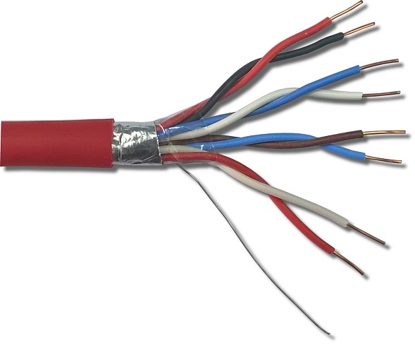 Кабель огнестойкий однопроволочный 4х2х0,97 мм с низким дымо и газовыделением, внешний D= 12,8 мм (красный)