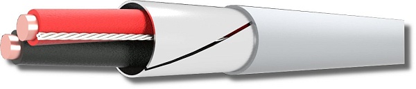 Кабели огнестойкие с медными однопроволочными жилами 2х2х1,5 кв мм, с изоляцией из кремнийорганической резины, с общим экраном из алюмолавсановой ленты и с контактным проводником из медной луженой проволоки, с оболочкой из ПВХ пластиката с пониженным газо- и дымовыделением и низкой токсичностью продуктов горения. Применяются в системах пожарной и охранной сигнализации (ОПС), системах оповещения и управления эвакуацией (СОУЭ) и передачи данных. Внешний D=7,90х12,70мм. Оболочка белого цвета.