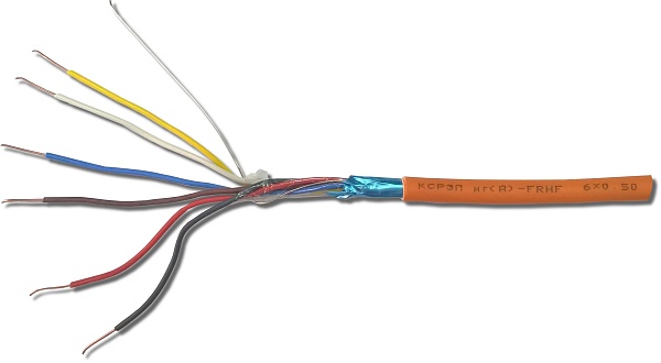 Кабель огнестойкий одно проволочный 6х0,5 мм с низким дымо и газовыделением, внешний D= 5,4 мм (оранжевый)