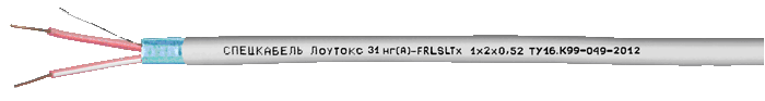 Кабель со сдвоенными параллельными парами, однопроволочными диаметром 0,52 мм медными жилами с изоляцией из огнестойкой кремнийорганической резины, с общим экраном из алюмолавсановой ленты и с контактным проводником из медной луженой проволоки. В оболочке D=7,8 мм, из ПВХ пластиката пониженной пожароопасности с низким дымо- и газовыделением с низким показателем токсичности продуктов горения. Оболочка белого цвета.