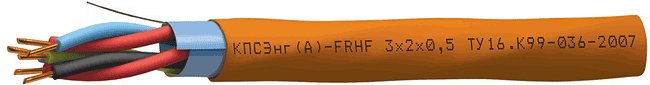 Кабель экранированный огнестойкий однопроволочный, симметричный, парной скрутки, с изоляцией из огнестойкой кремнийорганической резины в оболочке из безгалогенной полимерной композиции повышенной масло-бензостойкости, 1х2х0,75 мм.кв., внешний диаметр 6.2 мм, оранжевый