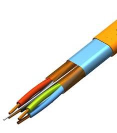 Кабель огнестойкий с изоляцией из огнестойкой кремнийорганической резины, с общим экраном из алюмолавсановой ленты, в оболочке из безгалогенной полимерной композиции, пониженной пожароопасности с низким дымо- и газовыделением. Пары с однопроволочными медными жилами D= 1,13мм. Оболочка оранжевого цвета. Наружный размер кабеля D=15,5 мм.