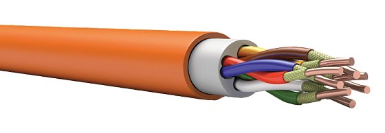 Кабель с однопроволочными медными жилами сечением от 2,5 мм², с изоляцией в виде термического барьера из слюдосодержащих лент, наложенных поверх токопроводящих жил с перекрытием не менее 40%, и ПВХ (PVC) пластиката пониженной пожароопасности c низким дымо- и газовыделением и низкой токсичностью продуктов горения. Изолированные жилы скручены попарно .