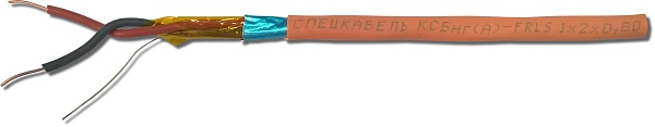 Кабель огнестойкий медный однопроволочный 1х2х0,8мм с изоляцией из огнестойкой кремнийорганической резины, с общим экраном из алюмолавсановой ленты, в оболочке из ПВХ пластиката пониженной пожароопасности с низким дымо- и газовыделением. Наружный размер кабеля D=6,6 мм. (оранжевый)