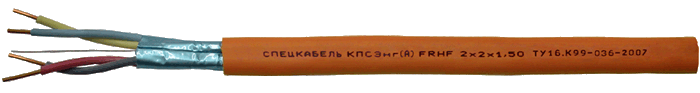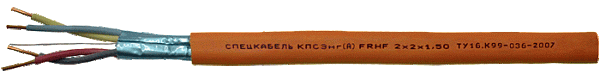 Кабель экранированный огнестойкий однопроволочный, симметричный, парной скрутки, с изоляцией из огнестойкой кремнийорганической резины в оболочке из безгалогенной полимерной композиции повышенной масло-бензостойкости, 2х2х0,75 мм.кв., внешний размер кабеля 6,70x10,60 мм, оранжевый