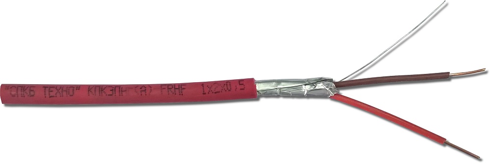Оболочка из полимерной композиции, не содержащей галогенов, пониженной пожароопасности с низким дымо- и газовыделением. Пары с однопроволочными медными жилами D=0,5 кв мм. Оболочка красного цвета. Наружный размер кабеля D=5,5 мм.