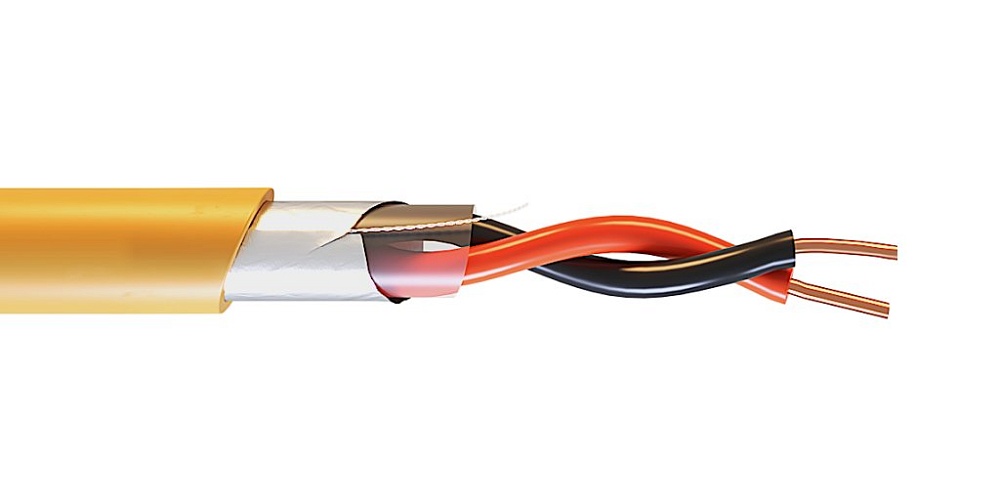 Кабель огнестойкий симметричный, групповой прокладки, в экране из алюмофлекса с дренажным проводником из медной луженой проволоки, в оболочке из не распространяющего горение, с низким газо- и дымовыделением ПВХ пластиката; две однопроволочных медных жилы сечением 0.5 кв.мм, в изоляции из огнестойкой силиконовой керамообразующей резины; t-раб.-50...+80°С; внешний диаметр 5.28 мм, масса 35.1 кг/км