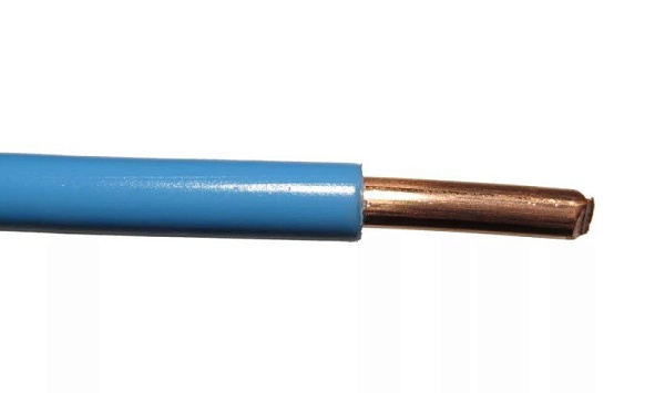 Провод с медной однопроволочной жилой в ПВХ изоляции для электрических установок; сечение 4 мм², Ø-нар. 3.9 мм, U-ном. 450 В; t-раб.-50...+65°С; цвет синий, бухта 200 м