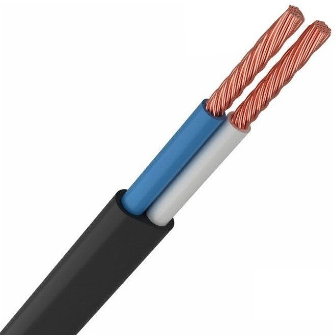 Провод с многопроволочными 2 жилами с поливинилхлоридной изоляцией, 3,4х5,6 мм, сечение жил = 0,75 кв. мм. Оболочка ПВХ пластикат черного цвета. Температура окружающей среды при эксплуатации провода: –25...+40 °С. Предельная длительно допустимая рабочая температура жил: +70 °С. (200 м бухта)