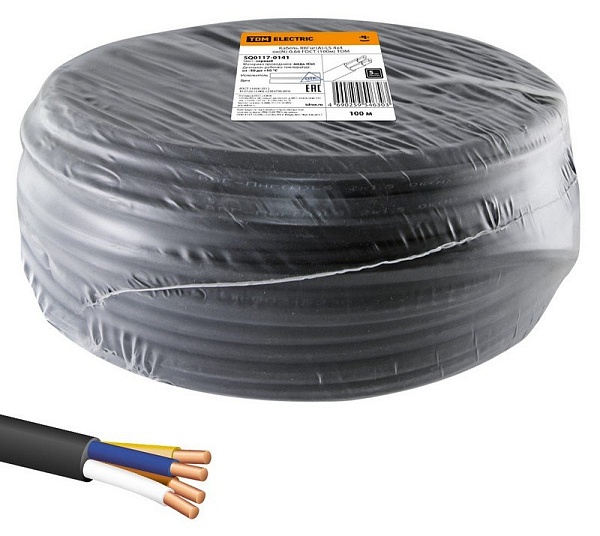 Кабель силовой круглый, с пониженным газо- и дымовыделением, не поддерживающий горение при групповой прокладке, оболочка ПВХ-пластикат; 4 медные однопроволочные жилы сечением 4 ммᶻ, Ø-внеш. 10,57 мм, U-ном. 0,66 кВ; t-монт. не ниже -15°С, t-раб. -50...+50°С; бухта 100м, масса 24.84 кг