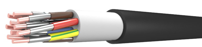 Кабель огнестойкий контрольный с медными однопроволочными жилами 10х1,5мм². Оболочка - из ПВХ пластиката пониженной пожароопасности ( черный). Наружный размер кабеля D=19,2 мм