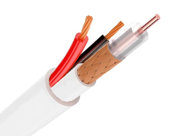 Кабель с коаксиальным (РК 75-2-122) проводником медь 1х0,37 мм и 2 жилами для питания с внешней поливинилхлоридной изоляцией, сечение жил = 0,75 кв. мм (для внутренней прокладки).